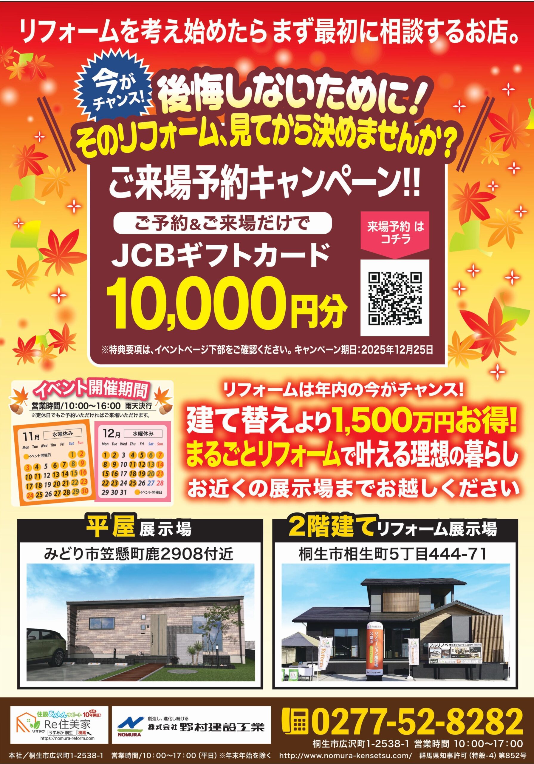 桐生リフォーム相談会 開催前 11月ご来場予約キャンペーン!!