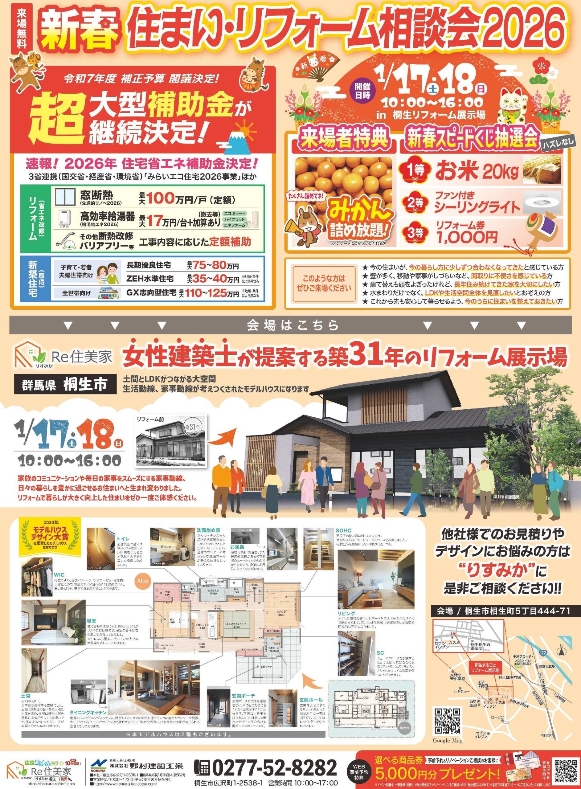 桐生リフォーム相談会 開催前 新春リフォーム・リノベ相談会 1月17・18日