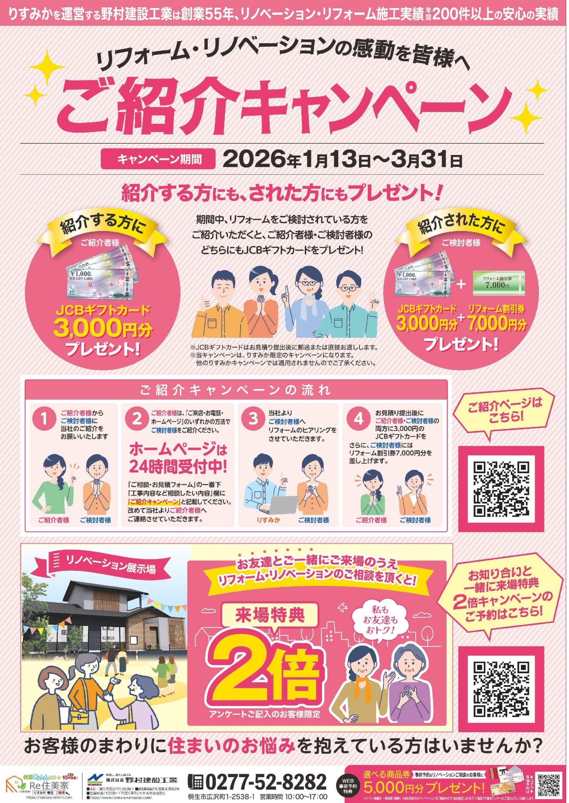 桐生リフォーム相談会 開催前 ご紹介キャンペーン3月31日まで