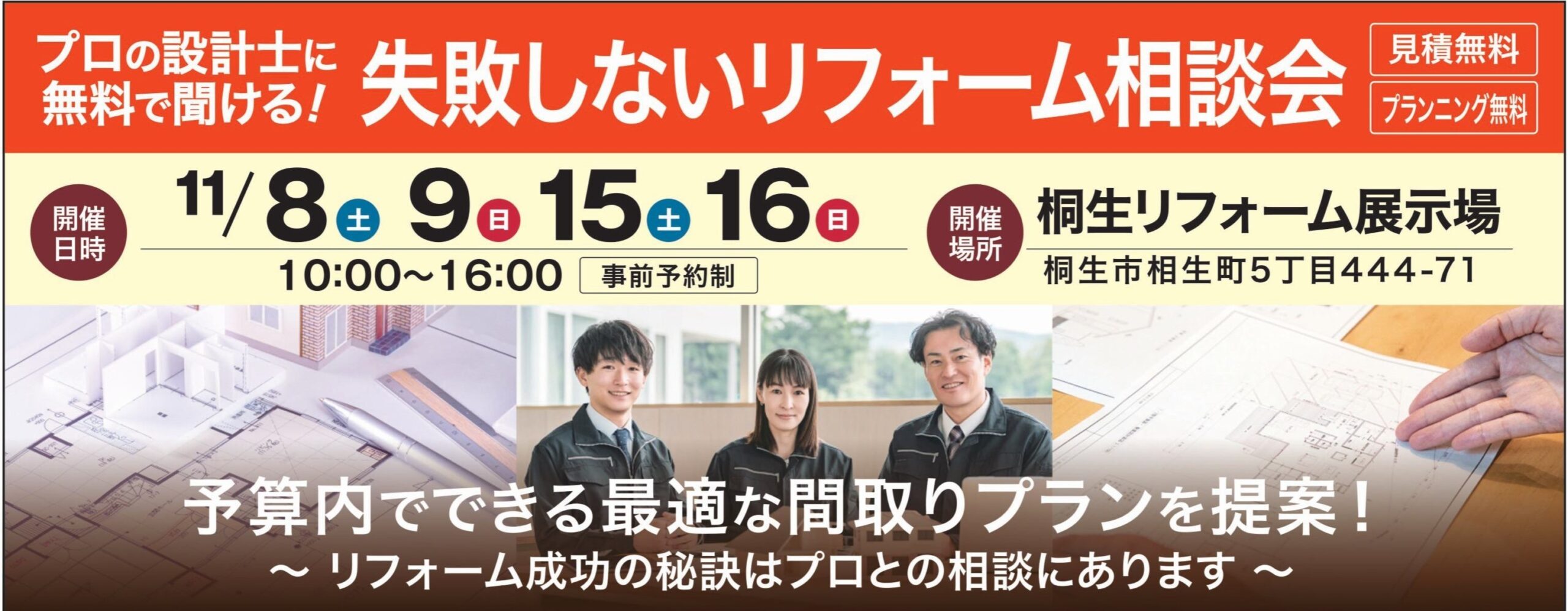 リフォーム相談会開催期間:2025.11.08~2025.11.16 開催前11月設計士相談会